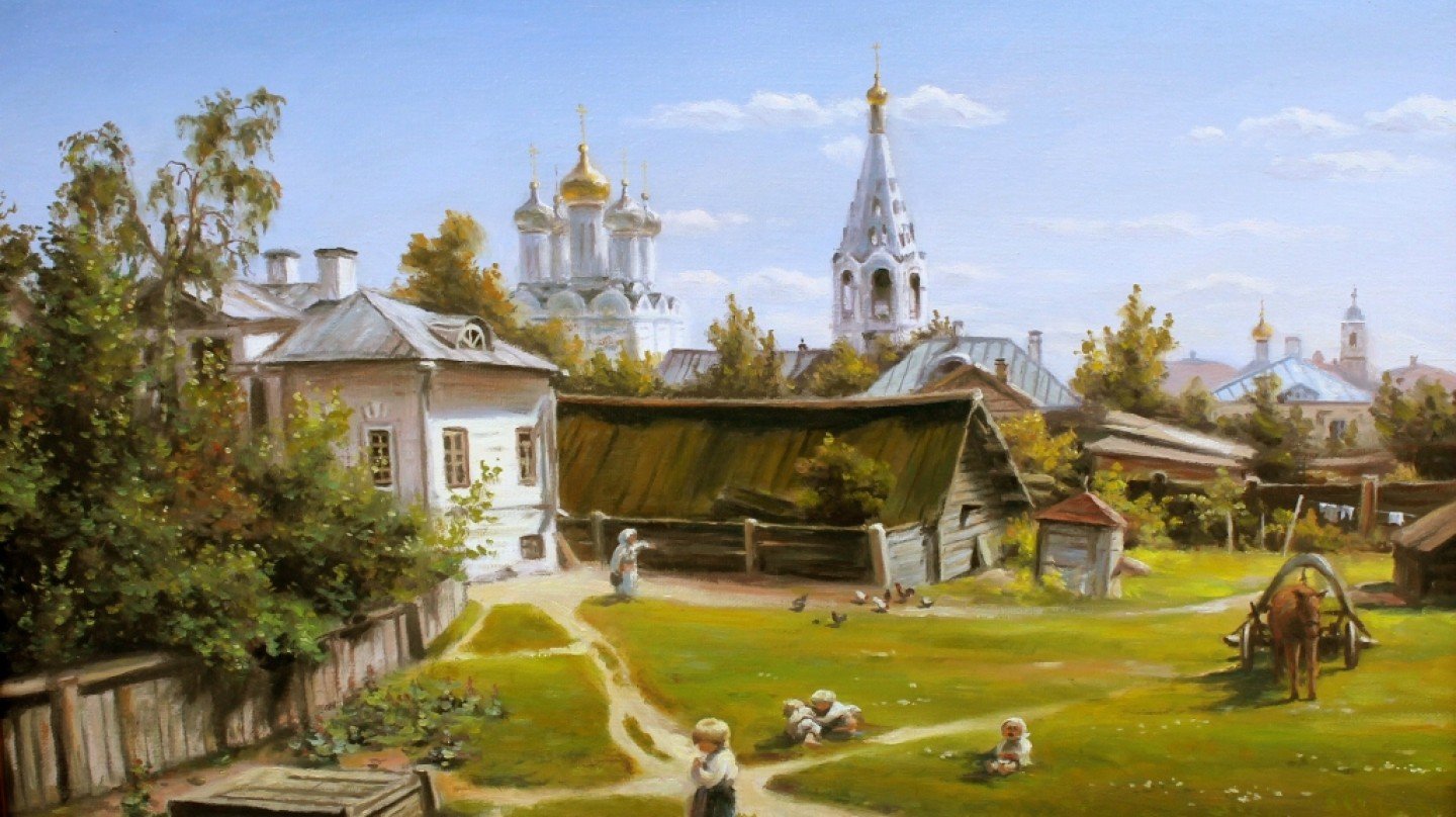 холсте автор воспроизвел типичный уголок старой Москвы — с её особнячками,
